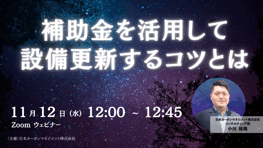 11月12日(水)に、省エネ補助金活用のウェビナーを開催いたします。